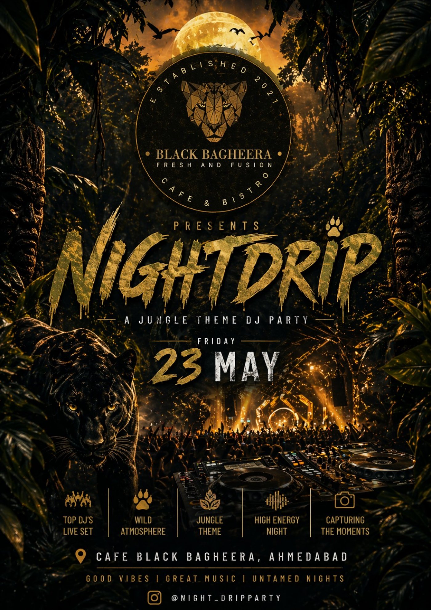 Get ready for a night that hits different. Night Drip brings the jungle alive on 23rd May at Black Bagheera — Ahmedabad’s wildest party night is here.