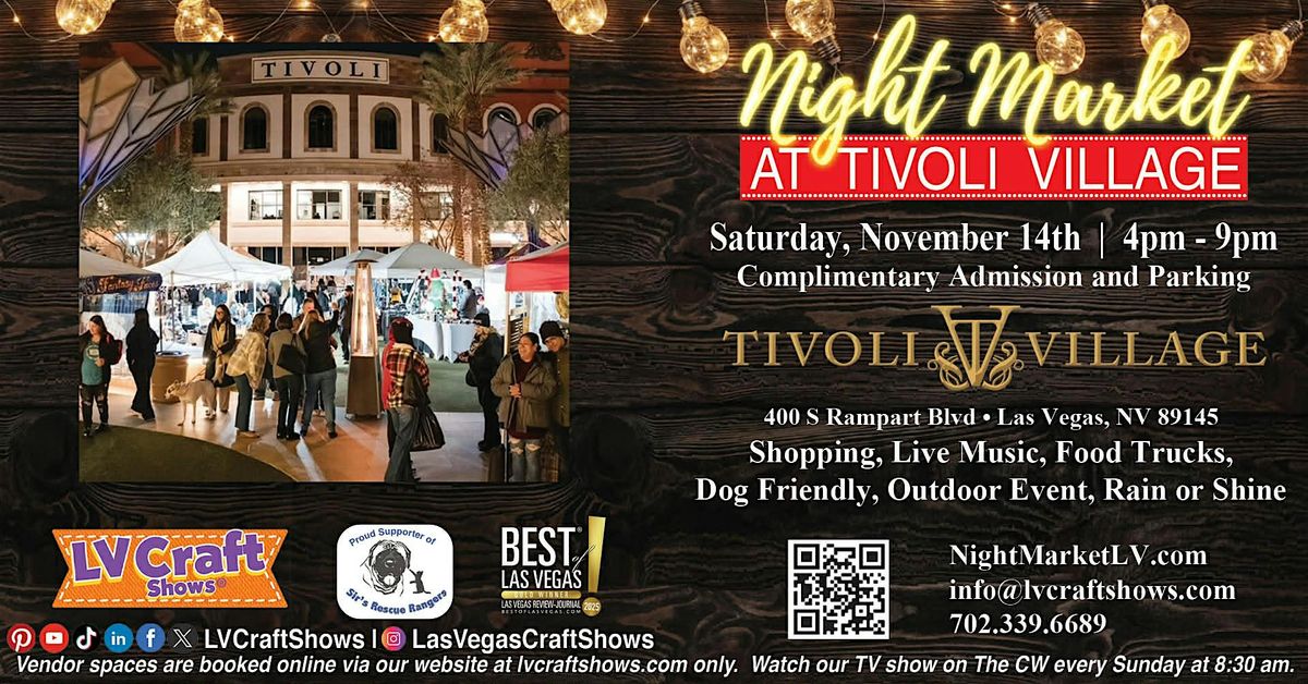 Night Market at Tivoli located in Tivoli Village is an outdoor event that supports local and growing businesses featuring: