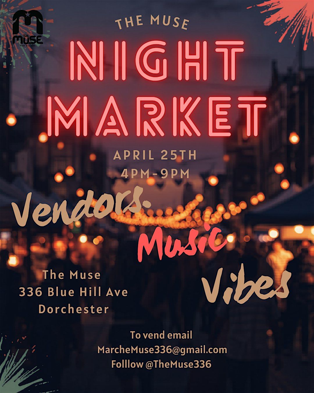 Get ready for a dope night out at the Night Market @ The Muse! It's all about good vibes, cool finds, and tasty bites. Explore a variety of local vendors, enjoy live music, and soak up the buzzing atmosphere. Whether you're shopping for unique gifts or just looking to hang with friends, this market’s the place to be. Don’t miss out! – See you there!