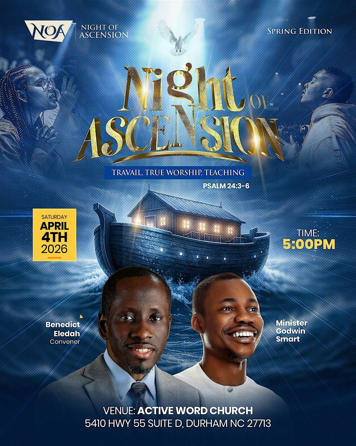 Get ready for an unforgettable evening of fervent prayer, true worship, and teaching of the word at Active Word Church! Join us on April 4, 2026 at 5:00 PM (ET) for the NIGHT OF ASCENSION.