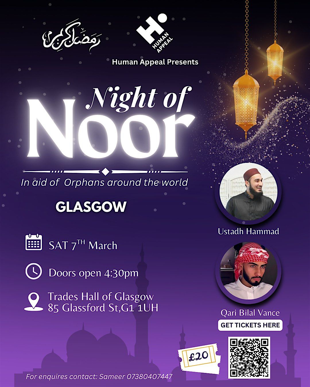 Join us for a spiritually uplifting evening this Ramadan at Night of Noor, a special charity event in aid of orphans around the world. Hosted by Human Appeal, this beautiful night will be filled with reflection, inspiration, and soul-stirring recitation.