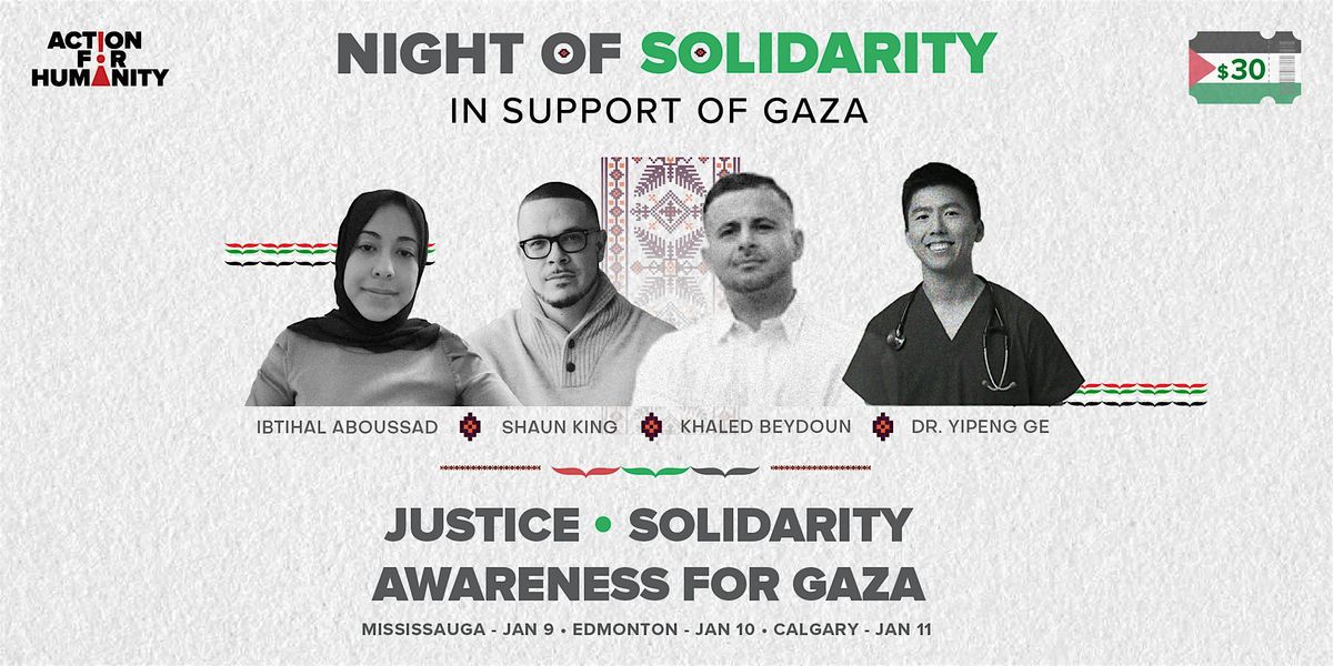 Join us in Calgary, Alberta for Night of Solidarity, a powerful evening dedicated to standing with the people of Gaza through truth, unity, and collective action.