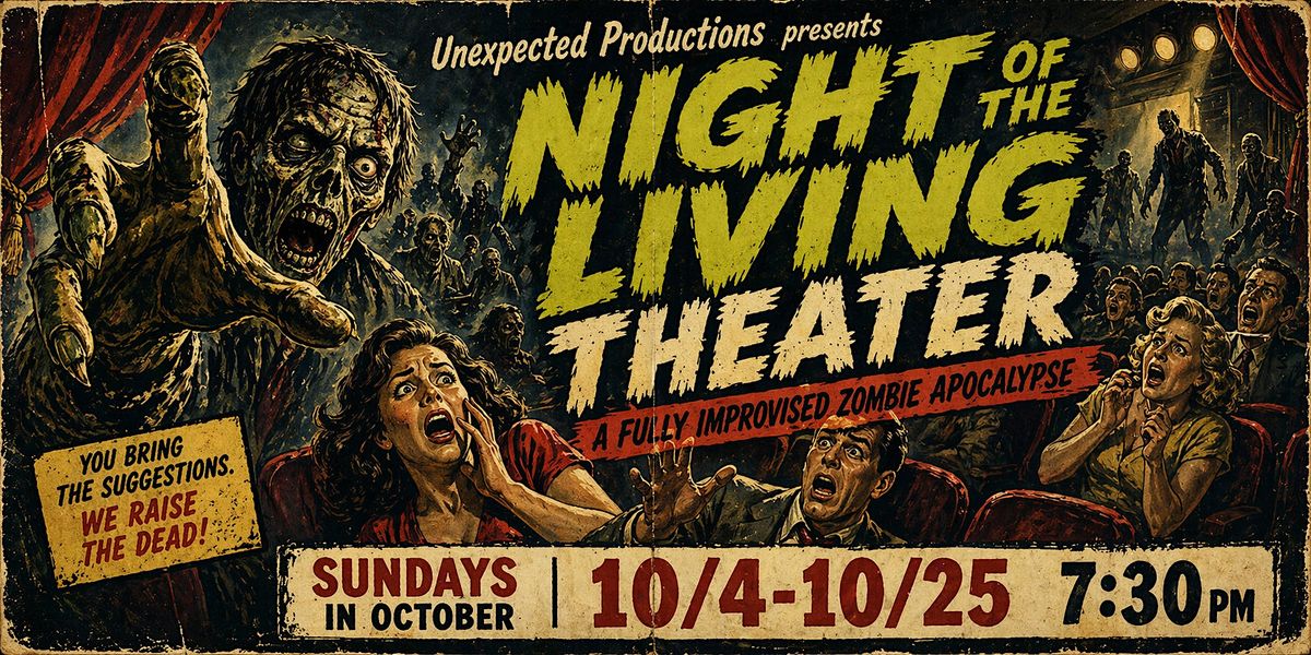 Performed live at Unexpected Productions in Seattle’s Pike Place Market, this one-of-a-kind Halloween improv show is perfect for fans of horror, comedy, zombies, live theater, and October fun.