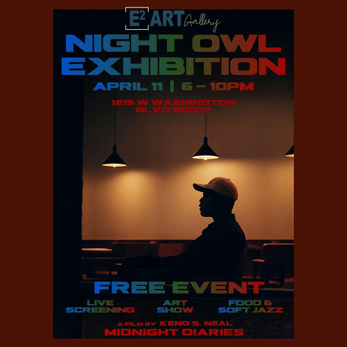 Come enjoy your Saturday evening with fellow Angelenos at E2Art Gallery where I will be hosting a *FREE* art show & screening of my dramatic narrative short film, Midnight Diaries. This exhibition will be a fun and safe space for my slow jazz lovers, lonely night owls and art fanatics who are looking for a community.