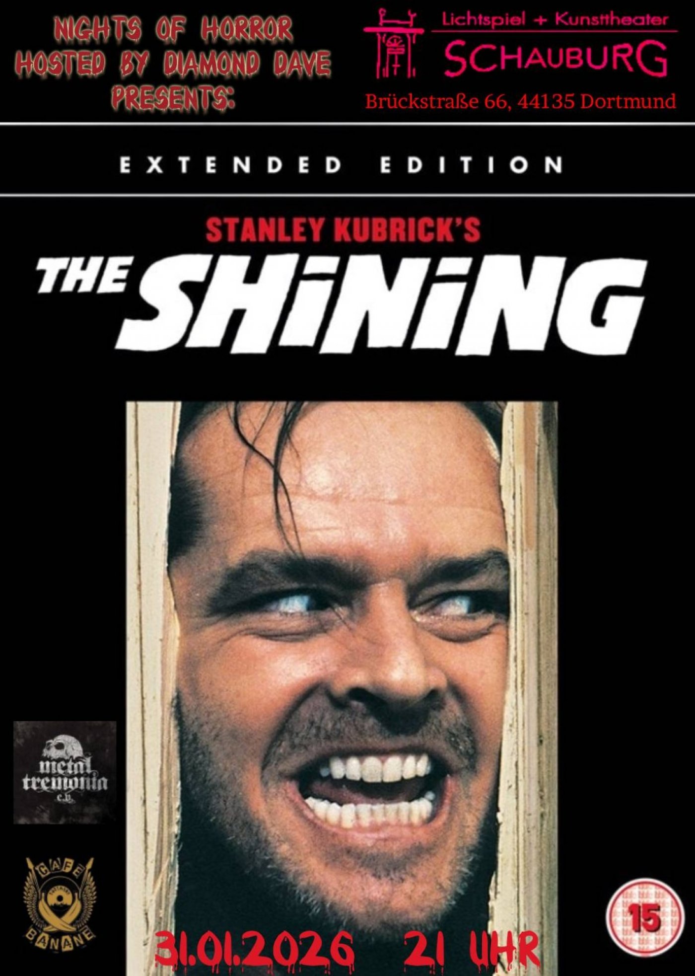 Stanley Kubricks Meisterwerk nach dem Buch von Stephen King. 144 Minuten, die geschnittene Szenen aus der 119-minütigen Fassung enthalten, die hier in Europa gezeigt wurde. Somit ist der Alptraum mit Jack Nicholson noch intensiver.