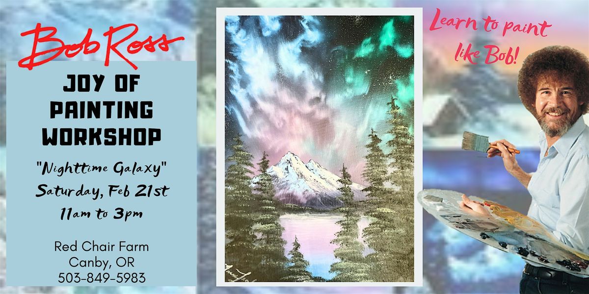 Come join us at Red Chair Farm for a relaxing day of this beautiful landscape, inspired by the legendary Bob Ross wet-on-wet oil painting technique. No experience needed - just bring your creativity and a willingness to learn! Our experienced instructors will guide you through each step, ensuring you leave with your very own masterpiece. All painting supplies provided Including use of brushes and 12x16 canvas. Don't miss out on this opportunity to unwind, have fun, and unleash your inner artist. Grab your friends and sign up today!