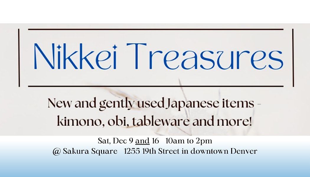 Come shop til you drop at the Nikkei Treasures Pop Up Sale! Get ready to discover a treasure trove of unique new and gently used Japanese items at Sakura Square. This event is a must-visit for all treasure hunters and bargain lovers. From kimonos to tableware to decor, there's something for everyone! Don't miss out on this opportunity to find hidden gems and one-of-a-kind treasures. Satisfy your shopping cravings, indulge in some retail therapy, and pick up some awesome gifts! Mark your calendars for the Nikkei Treasures Pop Up Sale happening Dec 9 and 16 from 10am to 2pm. Free admission and open to the public. Your sign up will provide access to information about more events like this, from which you can unsubscribe at any time.
