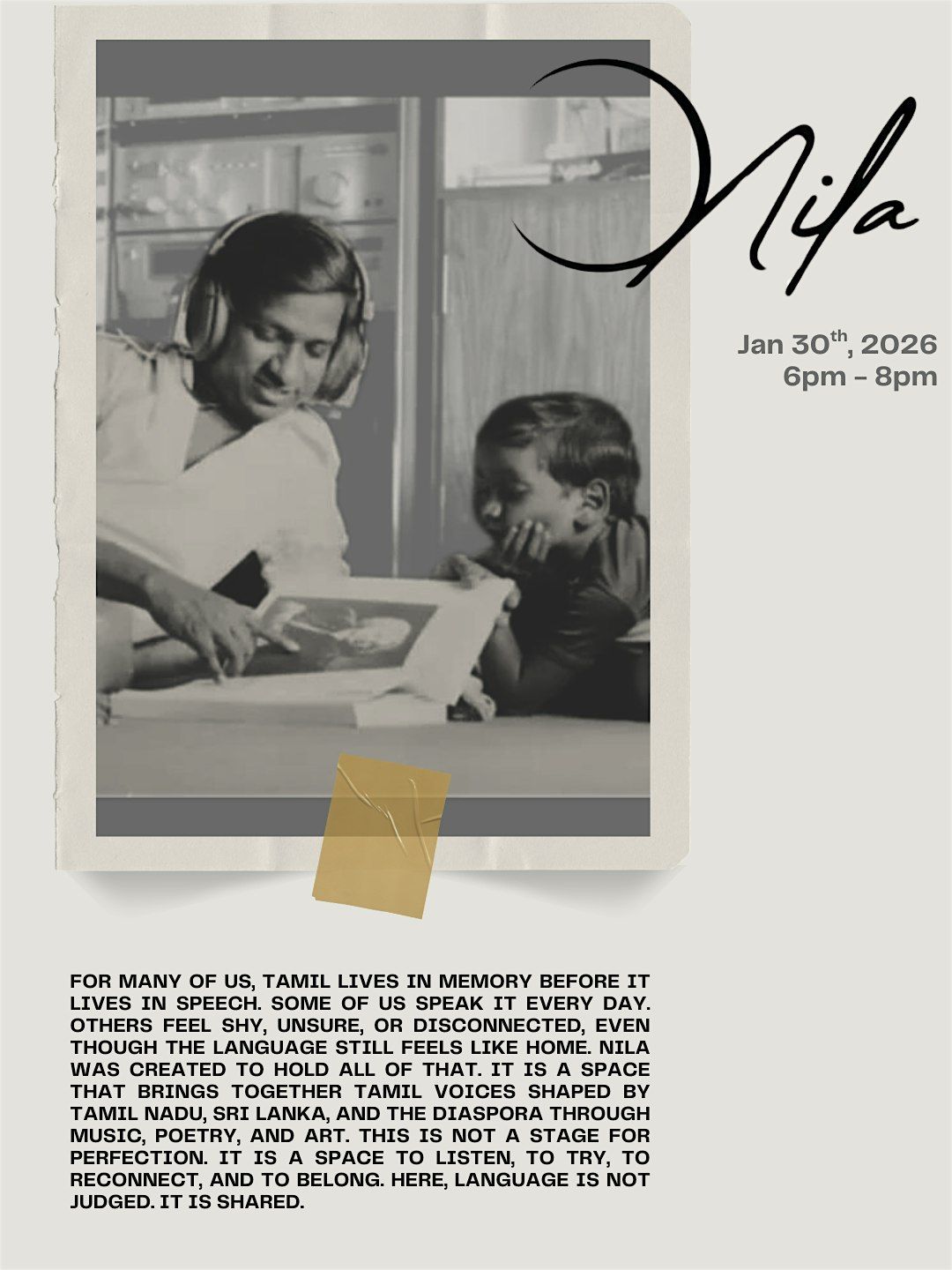 NILA is a gathering for Tamil expression. Speak, sing, listen, or simply be. Rooted in language. Open in spirit.