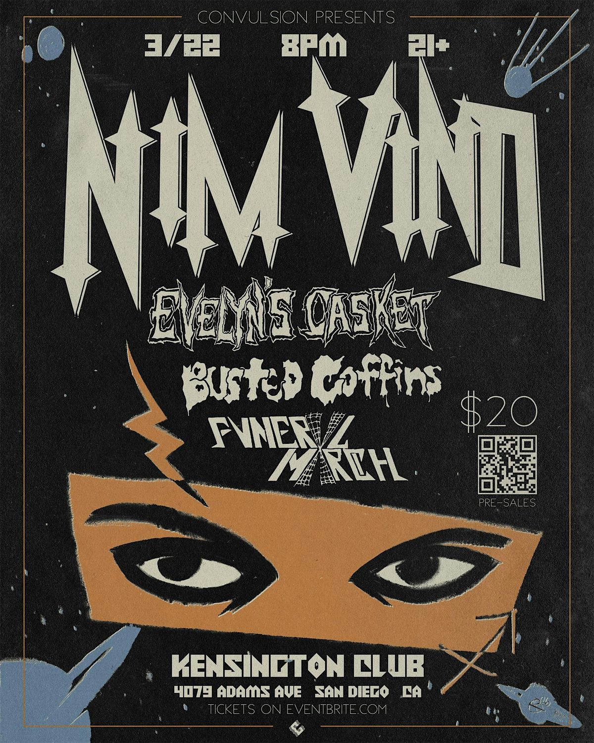 Horrorpunks NIM VIND (Canada) and EVELYN'S CASKET (Seattle) with local San Diego support from Busted Coffins and Fvnerxl Mxrch!