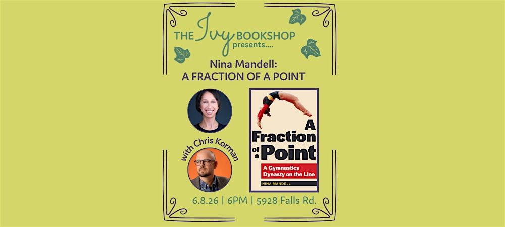 Celebrating the launch of Nina Mandell's Fraction of a Point: A Gymnastics Dynasty on the Line, with an author conversation with Chris Korman, Sports Editor of The Baltimore Banner!