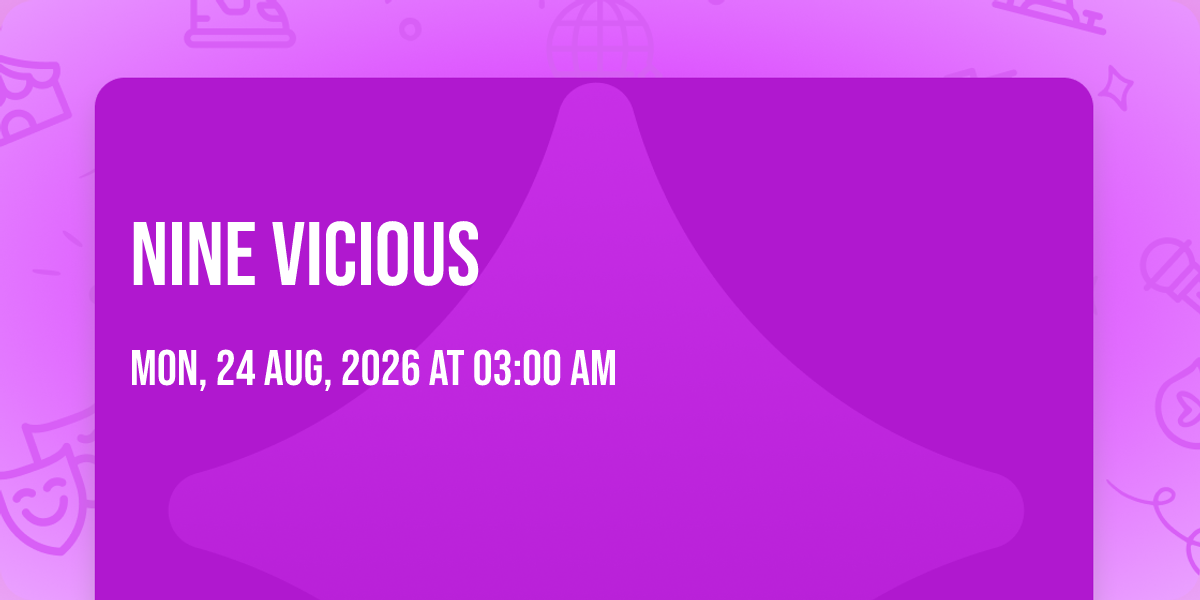 📍 Location: 47.6086, -122.339🎉 Welcome to Nine Vicious, where dreams come alive and possibilities are endless! 🏛️ Join us at The Showbox in the heart of Seattle, WA for an event that defies expectations. 📅 On August 24th, 2026 at 03:00 AM, be part of something truly extraordinary as we bring together innovation, entertainment, and pure magic. ✨ Every aspect has been carefully designed to ensure an unforgettable experience for all our guests. Whether you're seeking adventure, inspiration, or simply a break from the ordinary, this event promises to deliver beyond your wildest dreams. 🎊 Prepare for a journey into the extraordinary!