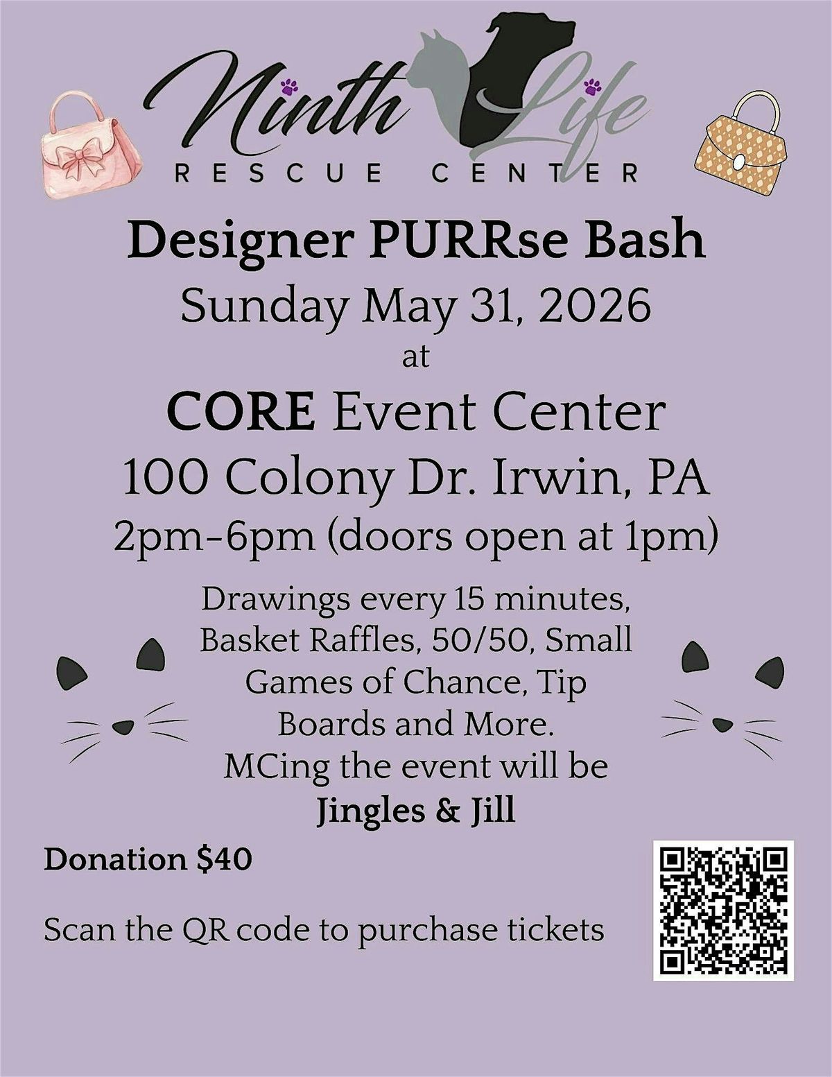 Join us for a fun day at Ninth Life Rescue Center's Designer PURRse Bash! We will have 50/50, basket raffles, pick of the table and more.About this Event