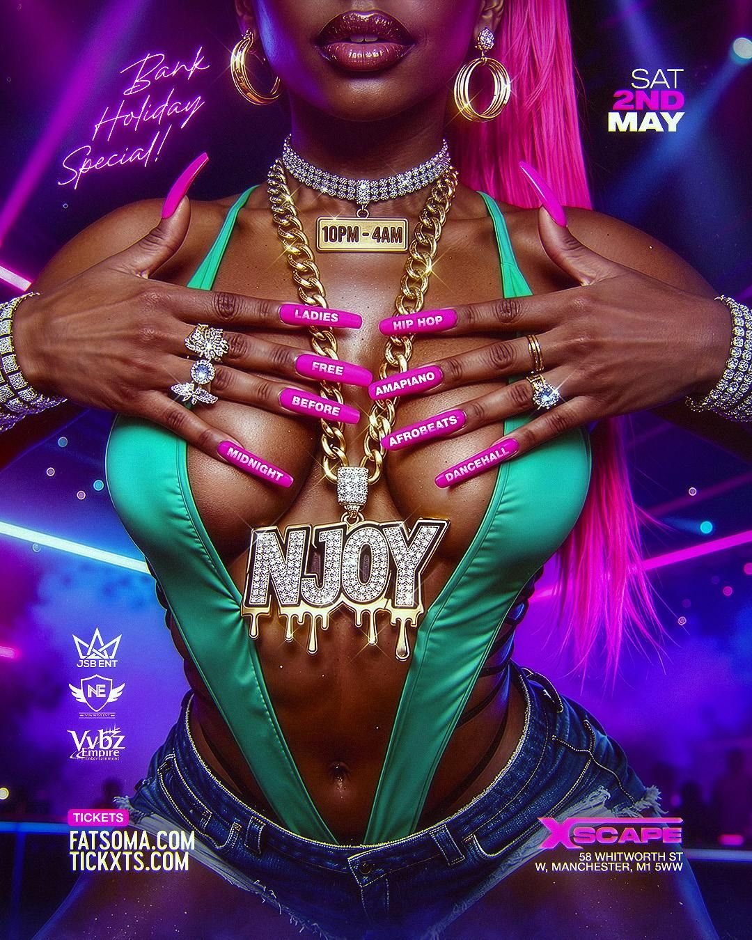 After a packed-out night and huge demand, NβJOY returns to Xscape for BANK HOLIDAY SPECIAL!Β Another high-energy edition. Expect a busy dancefloor, quality music and a strong crowd from start to finish.π Saturday 2nd May 2026