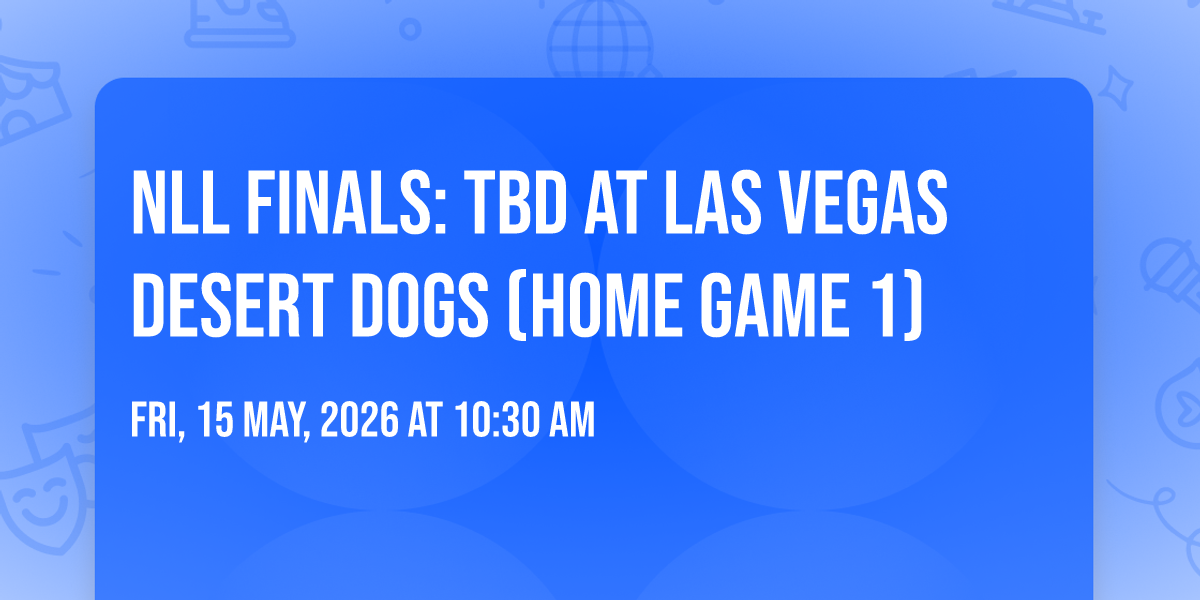 📍 Location: 36.0398, -115.193🌟 Journey into wonder at NLL Finals: TBD at Las Vegas Desert Dogs (Home Game 1), where extraordinary experiences await around every corner! 🏛️ Set against the backdrop of Lee's Family Forum in dynamic Henderson, NV, this event promises to exceed all expectations. 📅 Join us on May 15th, 2026 at 10:30 AM for a celebration that combines innovation, entertainment, and community spirit in perfect harmony. ✨ There will be an atmosphere where memories are made and stories come alive, ensuring every guest experiences something truly remarkable. 🎊 This is more than just an event; it's a journey into the extraordinary!