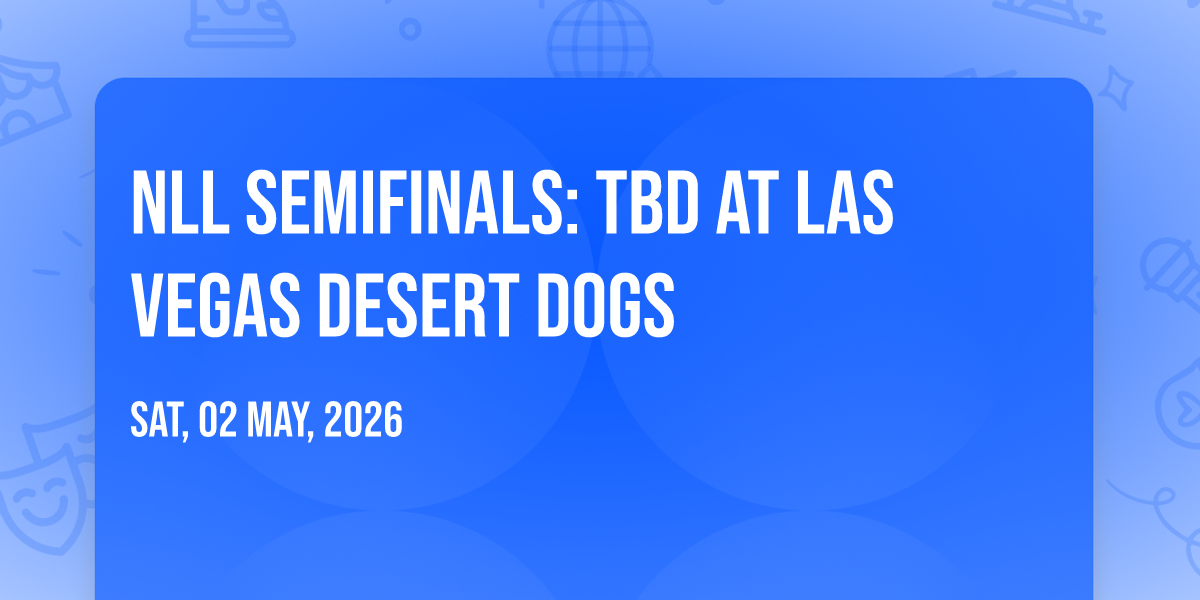 ๐ Location: 36.0398, -115.193๐ Welcome to NLL Semifinals: TBD at Las Vegas Desert Dogs, where dreams come alive and possibilities are endless! ๐๏ธ Join us at Lee's Family Forum in the heart of Henderson, NV for an event that defies expectations. ๐ On May 11th, 2026 at 10:30 AM, be part of something truly extraordinary as we bring together innovation, entertainment, and pure magic. โจ Every aspect has been carefully designed to ensure an unforgettable experience for all our guests. Whether you're seeking adventure, inspiration, or simply a break from the ordinary, this event promises to deliver beyond your wildest dreams. ๐ Prepare for a journey into the extraordinary!
