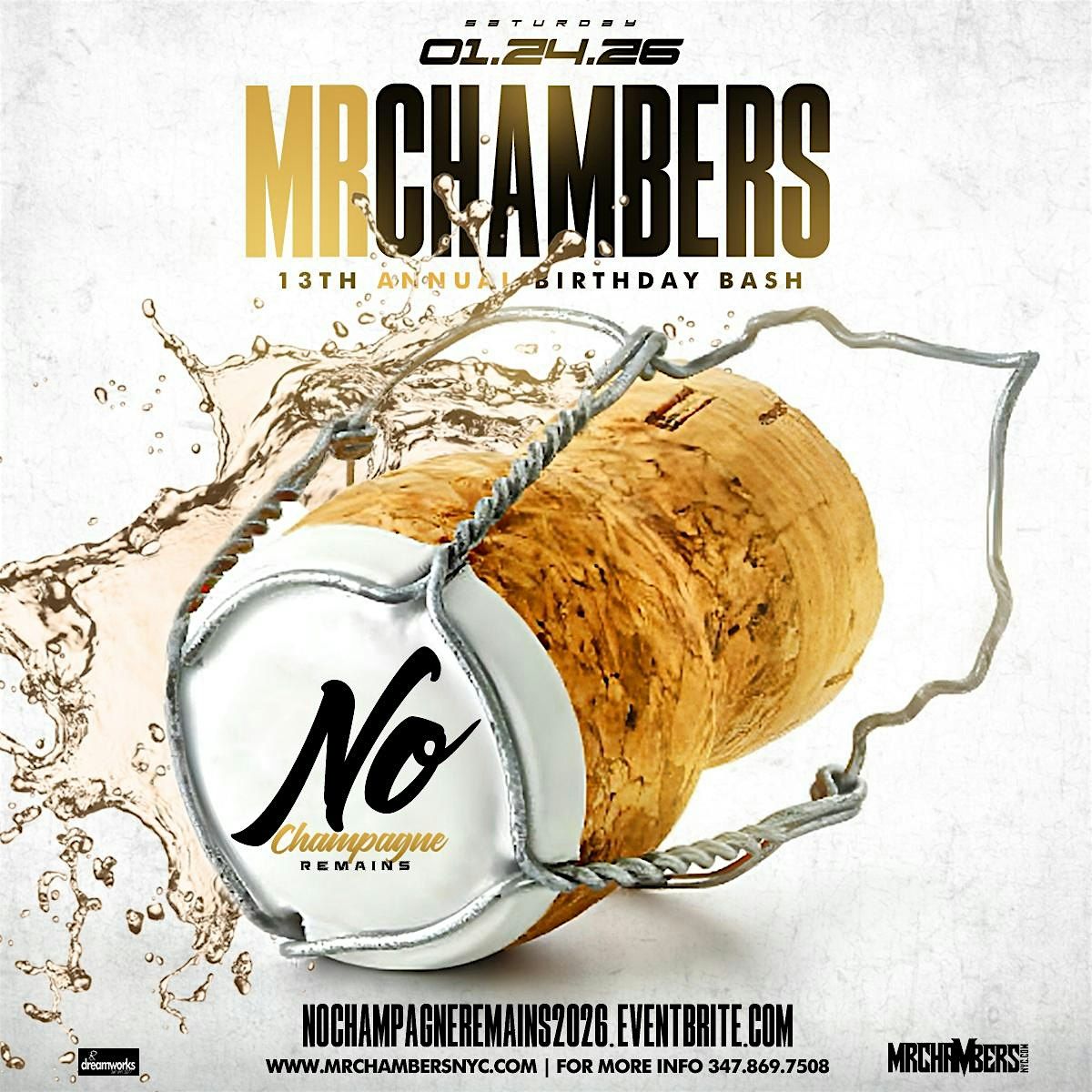 Join Mr. Chambers NYC for his annual birthday main event, "No Champagne Remains." Saturday, January 24, 2025.