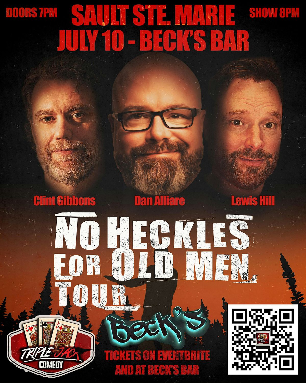 We’re proud to bring you the latest stop on the No Heckles for Old Men Tour — a night of world-class stand-up comedy featuring Clint Gibbons, Dan Allaire, and Lewis Hill. Sharp, hilarious, and completely unfiltered. Heckle at your perile, we're old cranky, and would love to go viral if you test us.