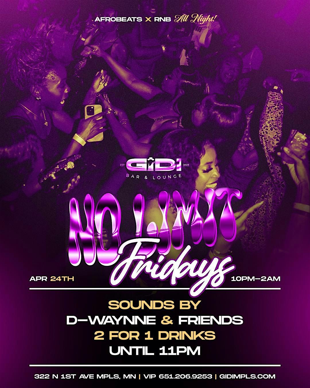 Get ready for No Limit Fridays—where the vibes know no bounds! This Friday, we’re taking you on a musical journey from Afrobeats to R&B to Hip-Hop. DJ Dwayne & Friends are set to ignite the dancefloor, bringing pure and nonstop energy. Don’t miss out on a night of unforgettable moments!