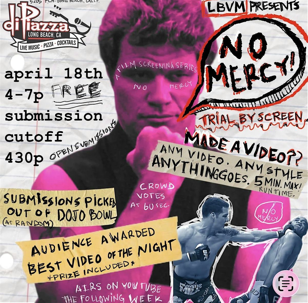 NO MERCY is a live open mic video night where anything can hit the screen.