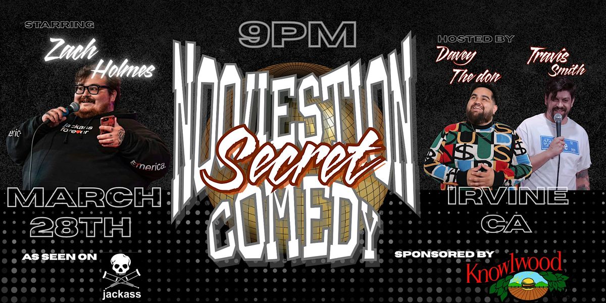 Zach Holmes headlines in Irvine! From the big screen to live and in your face in Irvine! The secret is out Zach Holmes from jackasss is here