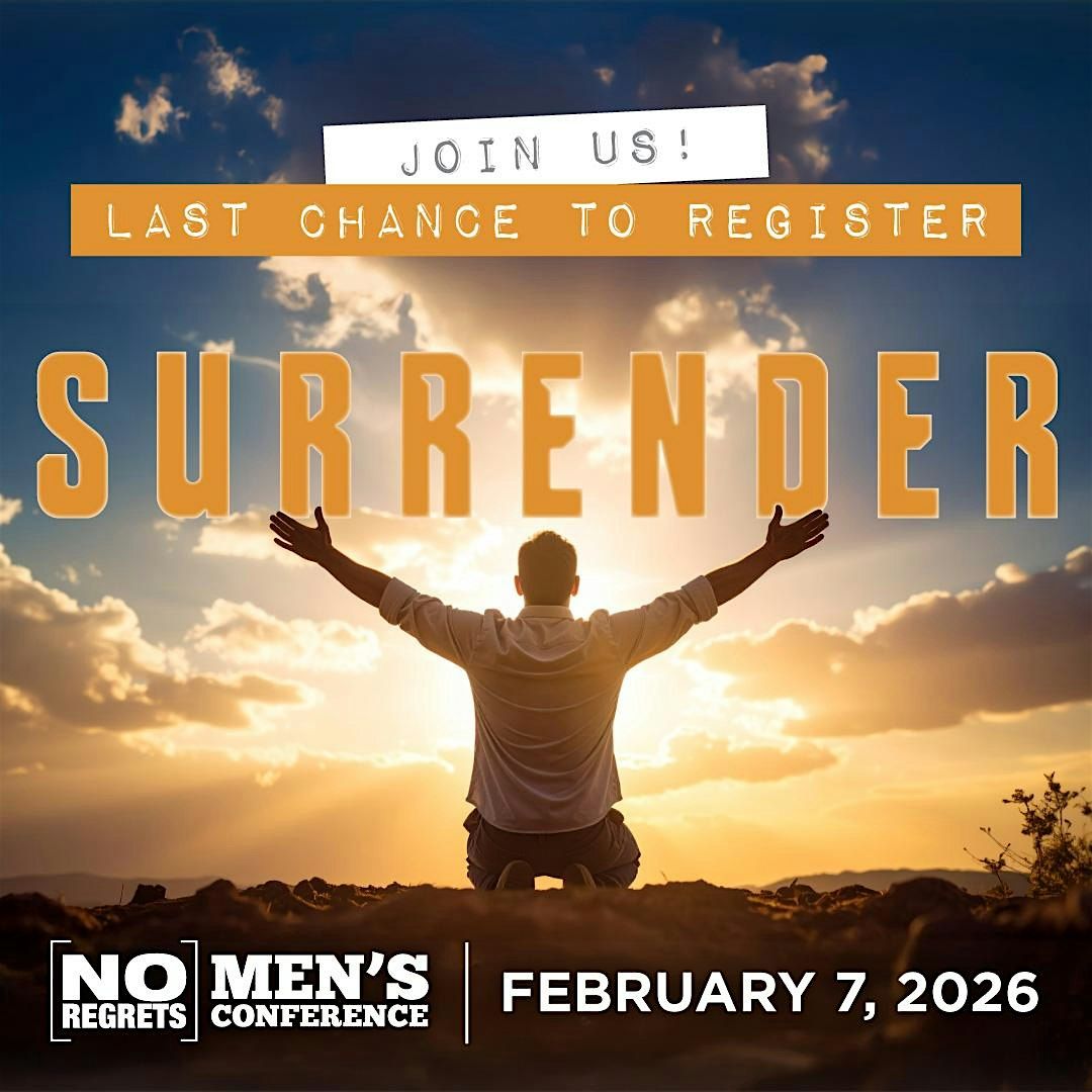 The No Regrets Men’s Conference is a Christ-centered, one-day event designed to call men toward spiritual maturity, wholehearted surrender to Christ, and faithful leadership in every area of life—home, work, church, and community.