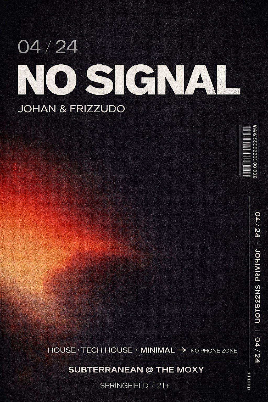 No Signal is a new exclusive dance party focusing on minimal techno and house music of the deep and sophisticated varieties. This is a special, curated monthly event featuring music you will not hear at any other club or venue in Springfield. Think longer sets and depper cuts — this is storytelling through sound with a flair for the dramatic, on a massive sound and lighting system. Located in an upscale environment: the Subterranean Lounge in the basement of the Moxy Hotel in downtown Springfield. There will only be 100 tickets sold to this event, and we will ask you to check your phone at the door. This show is about being present in the moment and experiencing the music on a deeper level — this is dance music for adults.