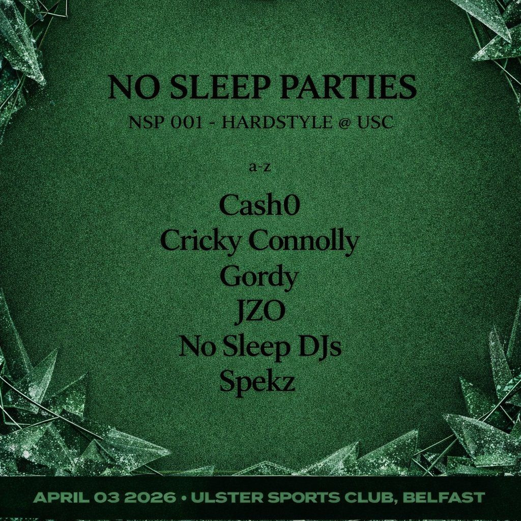 Techno/Hardstyle/RVB Event at Ulster Sports Club in the Committee Room on the 3rd of April 2026.Lineup A-Z ON POSTER.