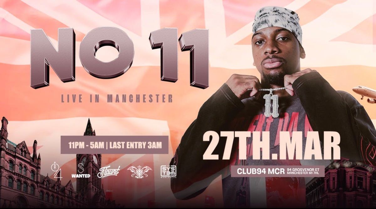 NO11 LIVE IN MANCHESTER Get ready Manchester! One of Nigeria’s fastest-rising sensations NO11 lands at Club94 MCR for a special live performance on March 27th. Known for his infectious sound, street anthems, and the viral hit “How Far,” NO11 is bringing his signature energy, charisma, and wave straight to the stage for one unforgettable night.