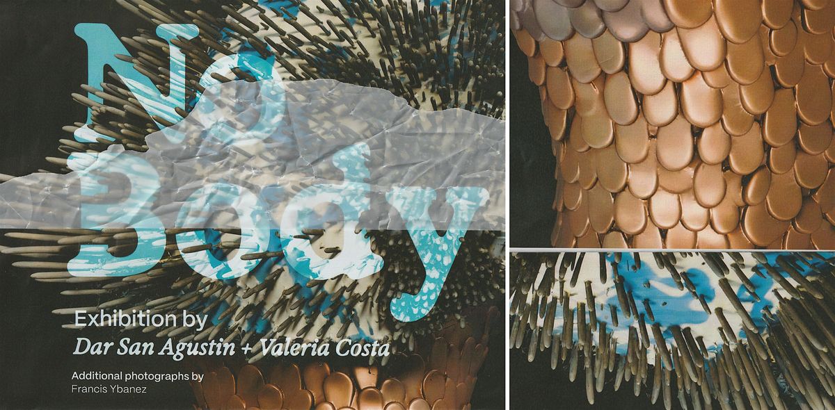 NoBody is a two-person exhibition created by Dar San Agustin and Valeria Costa. Each work considers the body as a vessel shaped by violence. Objects stand in as the subject, absorbing harm, desire, and labor over time. Bodies are stripped of anatomy and rendered into non-form, altered beyond their original function.