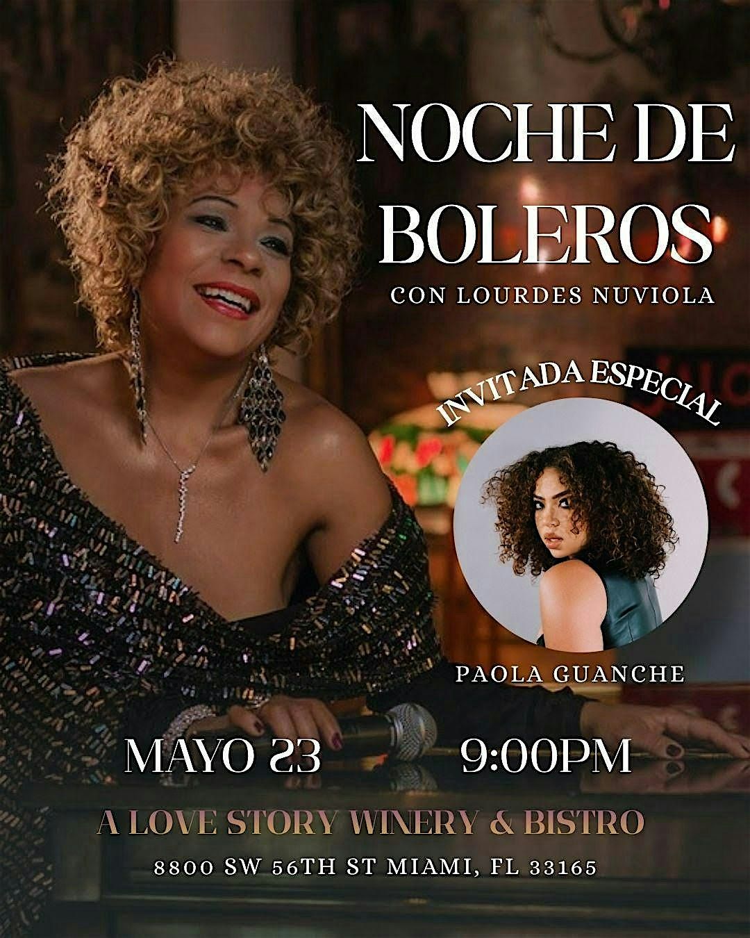 Magica velada en la Noche de Boleros junto a la incomparable Lourdes Nuviola. Repertorio variado e invitados de lujo.No te lo puedes perder!