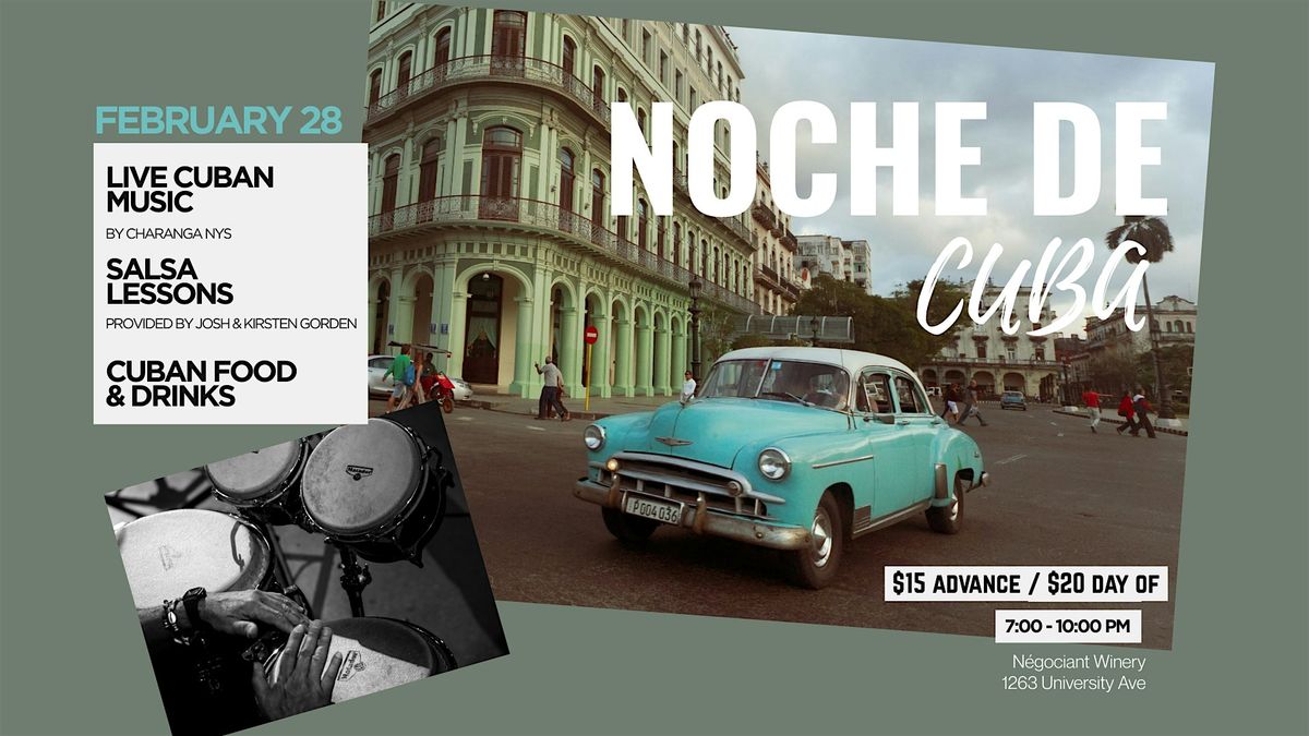 Step into a refined yet vibrant atmosphere inspired by the golden era of Cuban nightlife. Enjoy live Cuban musicians, learn the art of movement with guided salsa lessons, and indulge in thoughtfully crafted Cuban food and drink specials — all within the intimate setting of Negociant Winery.