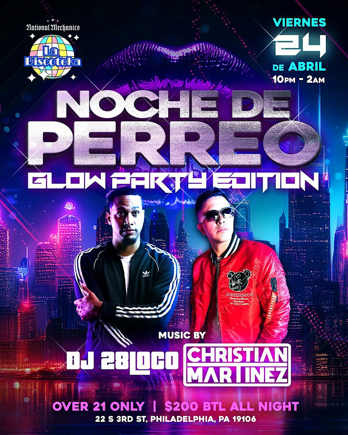 Noche de perreo glow edition party.Prepárate para bailar sin parar y dejar que el ritmo te lleve toda la noche.
