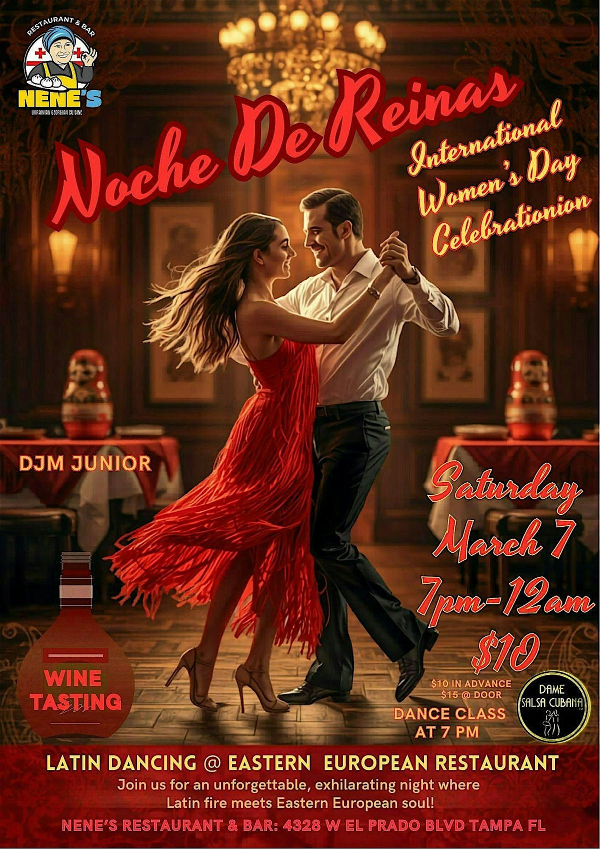 Where Eastern Europe meets Latin fire… and the dance floor gets deliciously irresistible.Step into Nene’s Restaurant & Bar this Saturday, March 7, from 7 PM–midnight, and let’s celebrate International Women’s Day with sabor, elegance, and a whole lot of flirtatious fun.
