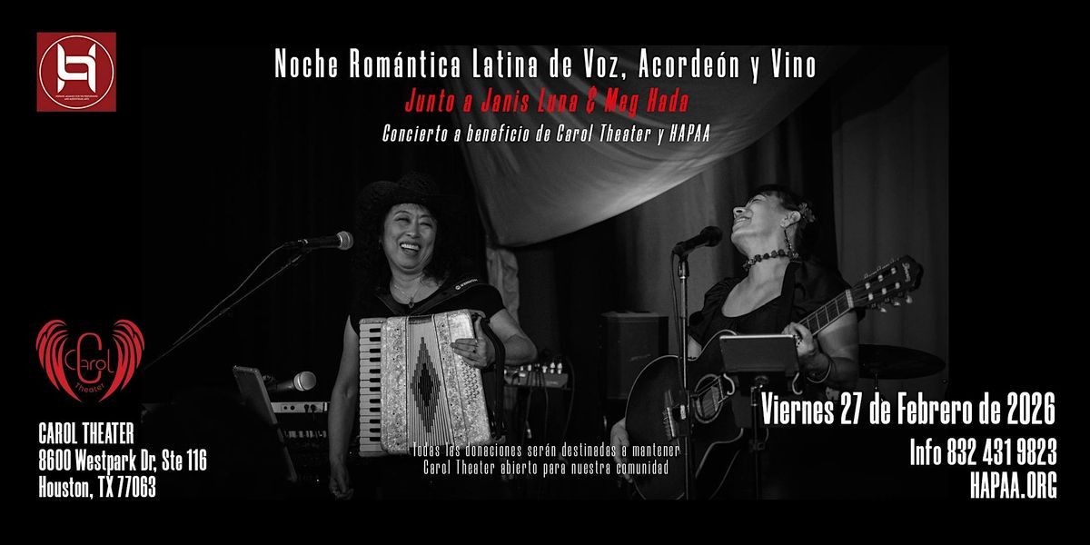 🎶 Concierto a Beneficio – Carol Theater Presenta“Noche Romántica Latina de Voz, Acordeón y Vino”