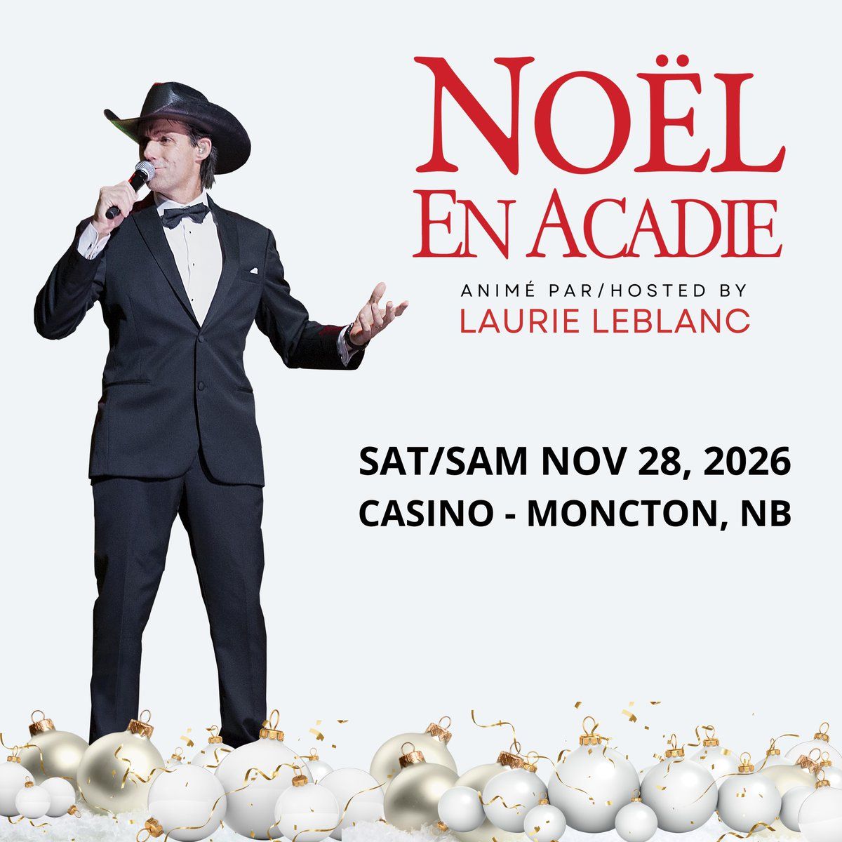 🎉 Welcome to Noel en Acadie With Laurie Leblanc, where the impossible becomes possible and dreams take flight! 🏛️ Join us at Molson Canadian Centre at Casino New Brunswick in the heart of Moncton, NB for an event that will redefine your expectations. 📅 On November 27th, 2026 at 08:00 PM, witness the transformation of space and time into something truly magical. ✨ It's a curated experience combining the best of innovation, entertainment, and community spirit, creating moments that will be remembered for years to come. Whether you're a first-time visitor or a seasoned enthusiast, prepare to be amazed. 🎊 Book now to ensure your place in this unforgettable experience!http://maps.seatics.com/MolsonCanadianCentreAtCasinoNewBrunswick_EndstagewPremiums_2023-07-14_2023-07-14_0720_07142023_082825_SVGC_tn.png