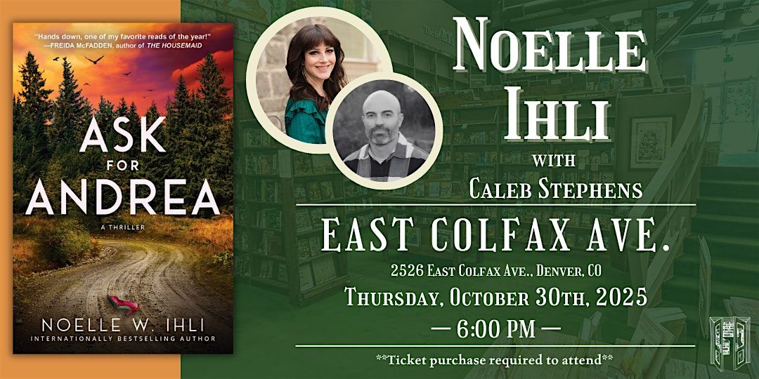 Join us as we celebrate best-selling thriller writer, Noelle Ihli's book, Ask For Andrea, in a great conversation with local award-winning author, Caleb Stephens on Thursday, October 30th at 6:00 PM at our Colfax location.