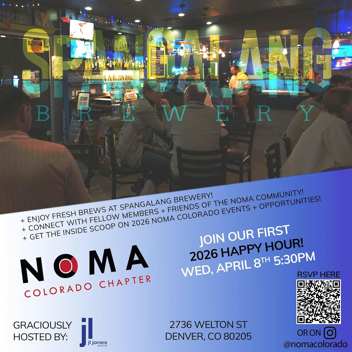 At Spangalang Brewery! Fashioned in the spirit of the Harlem Renaissance, Spangalang Brewery merges the craft beer world with modern urban culture in Historic Five Points. Connect with fellow Members and Friends of the NOMA community, learn about upcoming 2026 NOMA events, and enjoy some brews thanks to JL Jones Group!