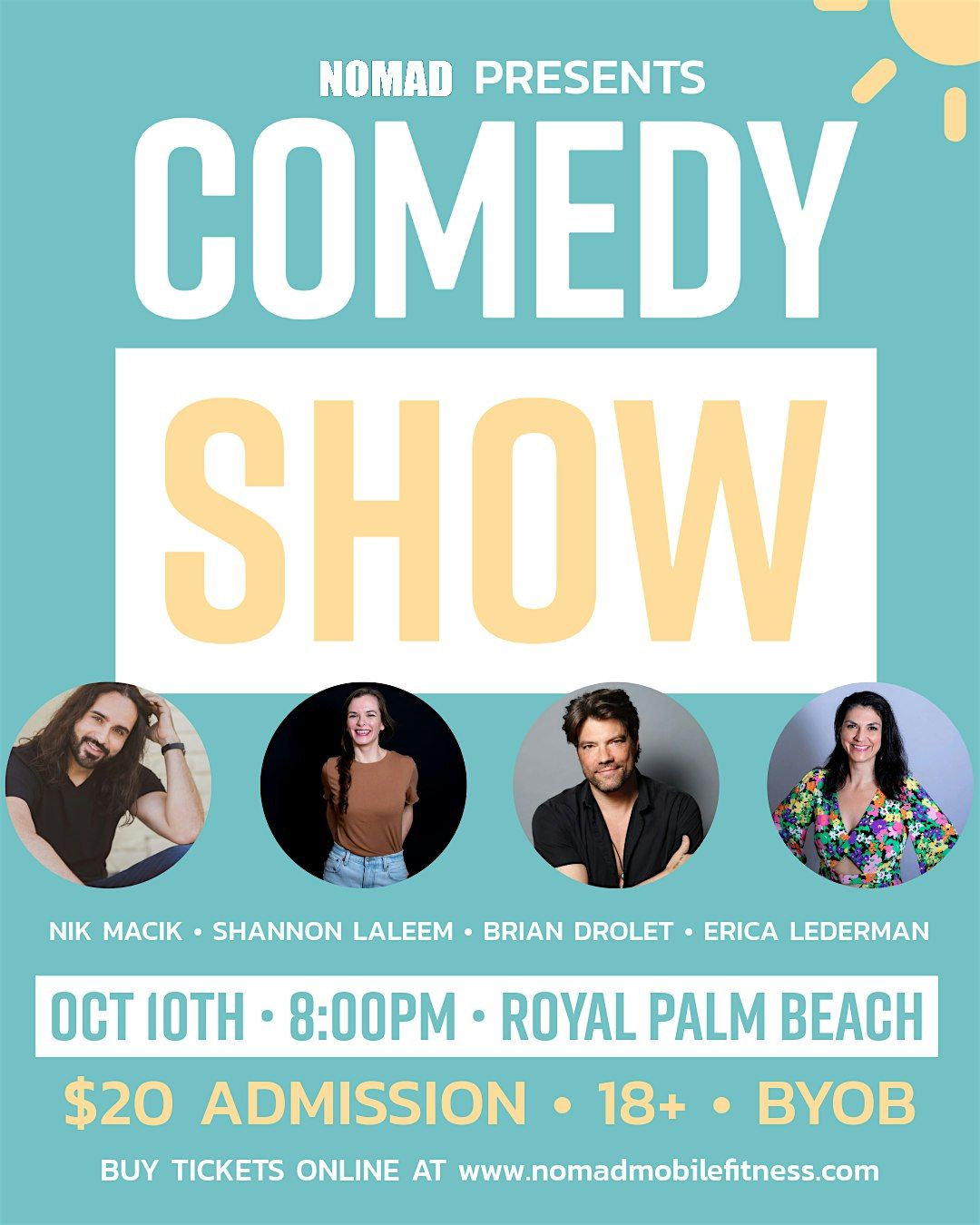 4 Of South Florida’s Best Comedians - $20 Early Admission ($25 at the door) - Bring Your Own Beverages and Chairs