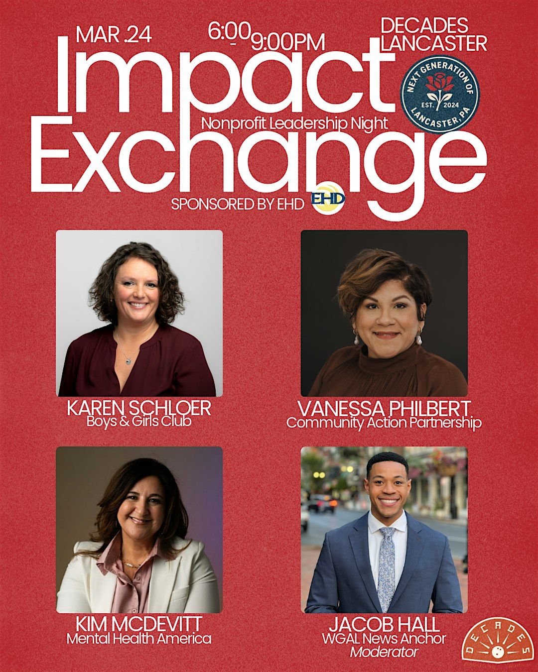 This event will feature a moderated panel with executive directors from the Boys and Girls Club of Lancaster County, Community Action Partnership, and Mental Health America of Lancaster County. The discussion will be led by WGAL news anchor Jacob Hall and will highlight the work being done across Lancaster, the challenges nonprofits face, and how the community can get involved and support their missions.