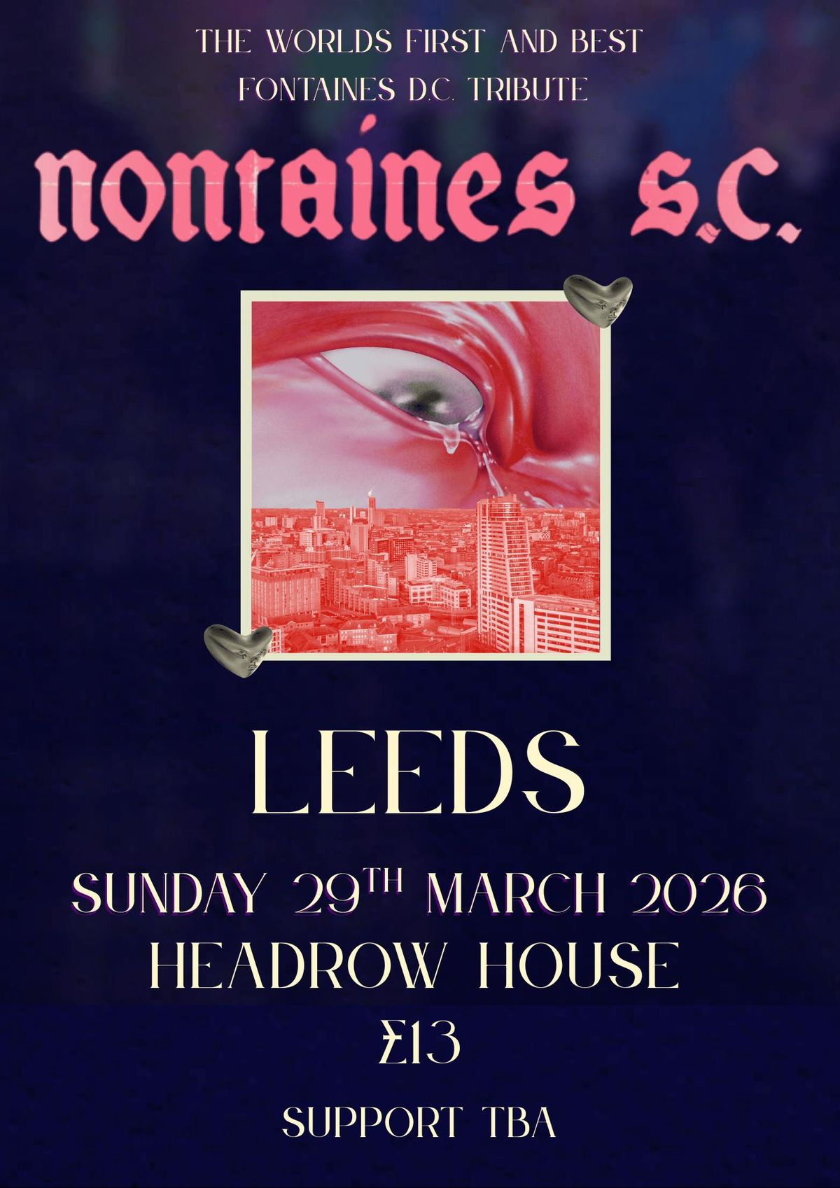 The world's first and best Fontaines D.C. tribute Nontaines S.C. comes to Leeds for the most faithful recreation of a full headline set from Irish Post-Punk legends Fontaines D.C. Delivering high energy, Flawless, and driven hits as well as deep cuts, this night would be a shame to miss.Disclaimer: