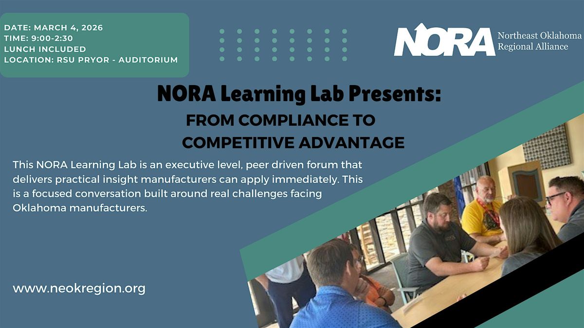 The NORA Learning Lab is an executive level, peer driven forum that delivers practical insight manufacturers can apply immediately. This is a focused conversation built around real challenges facing Oklahoma manufacturers.
