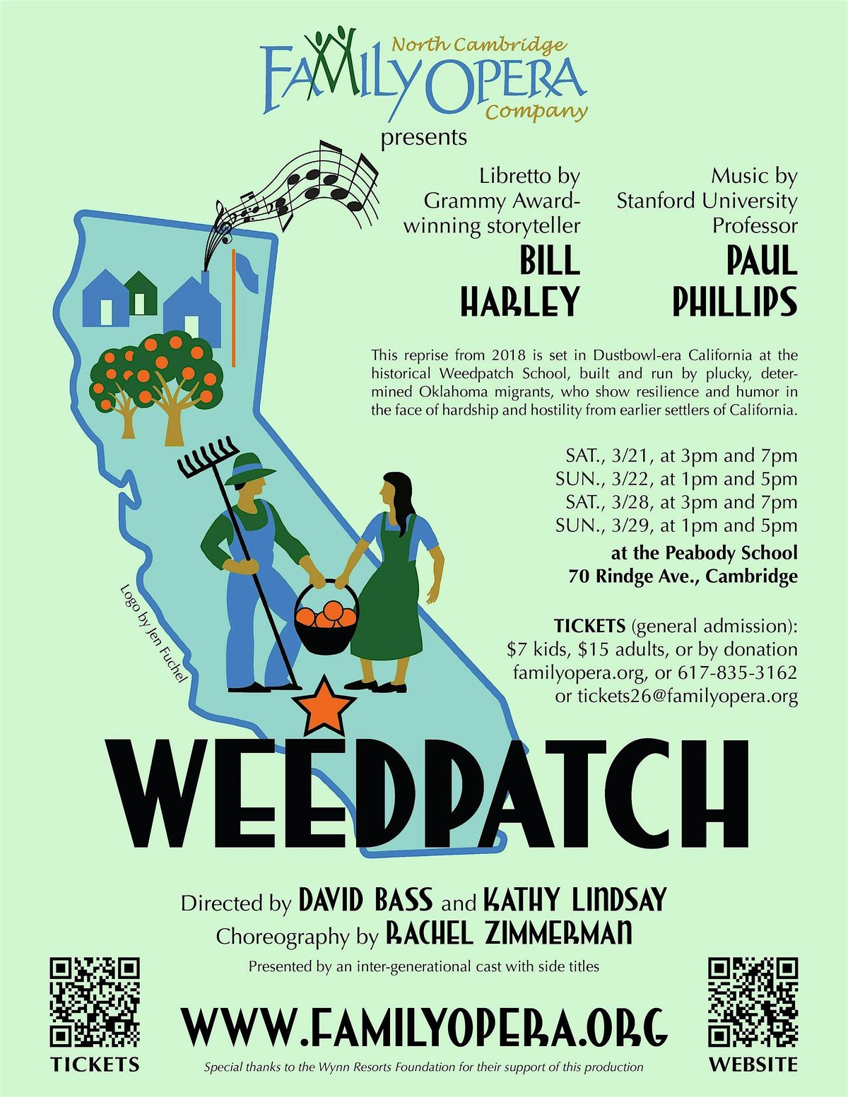 Hardship, laughter, and song in Dustbowl-era California! This heartwarming, fully-sung, 2-hour opera in two acts (including intermission) is set at the historical Weedpatch School, built and run by plucky and determined Oklahoma migrants who show resilience and humor in the face of hardship, hostility and prejudice from earlier settlers of California.