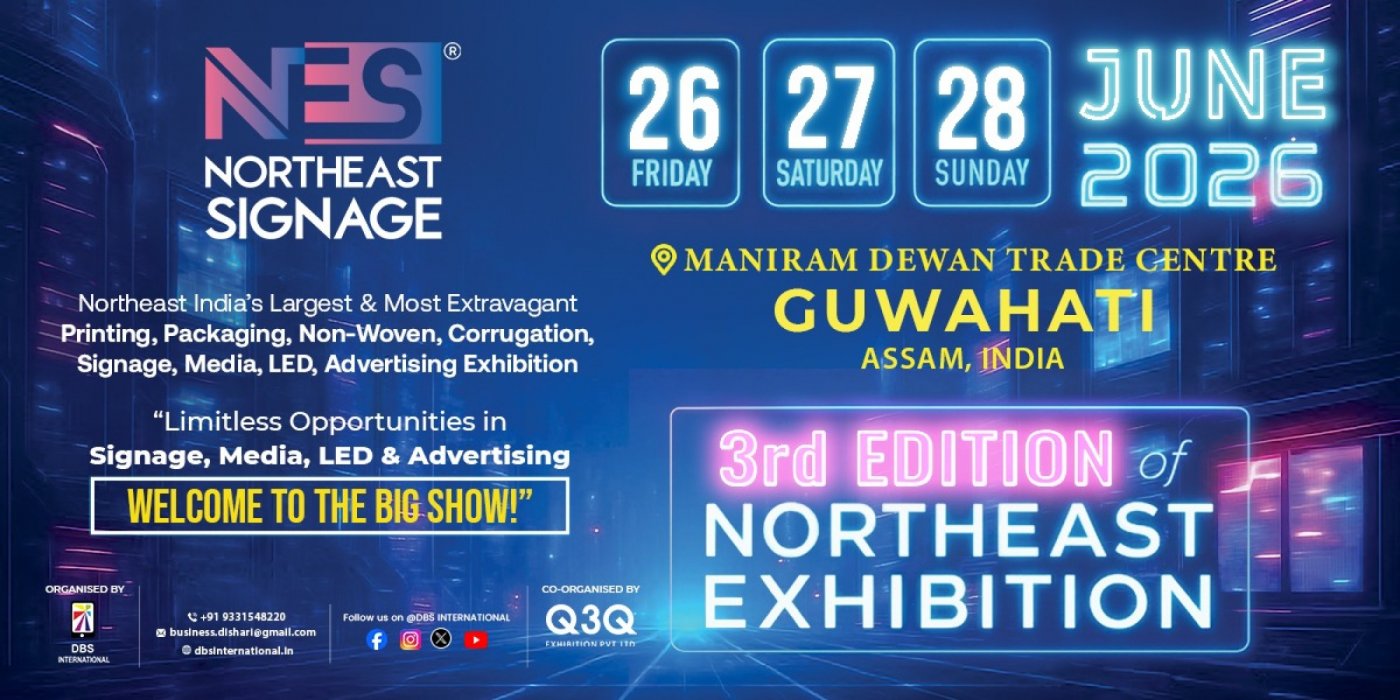 Organised by DBS International and co-organised by Q3Q Exhibition Pvt Ltd, this mega expo is set to transform the signage and printing landscape of Northeast India.
