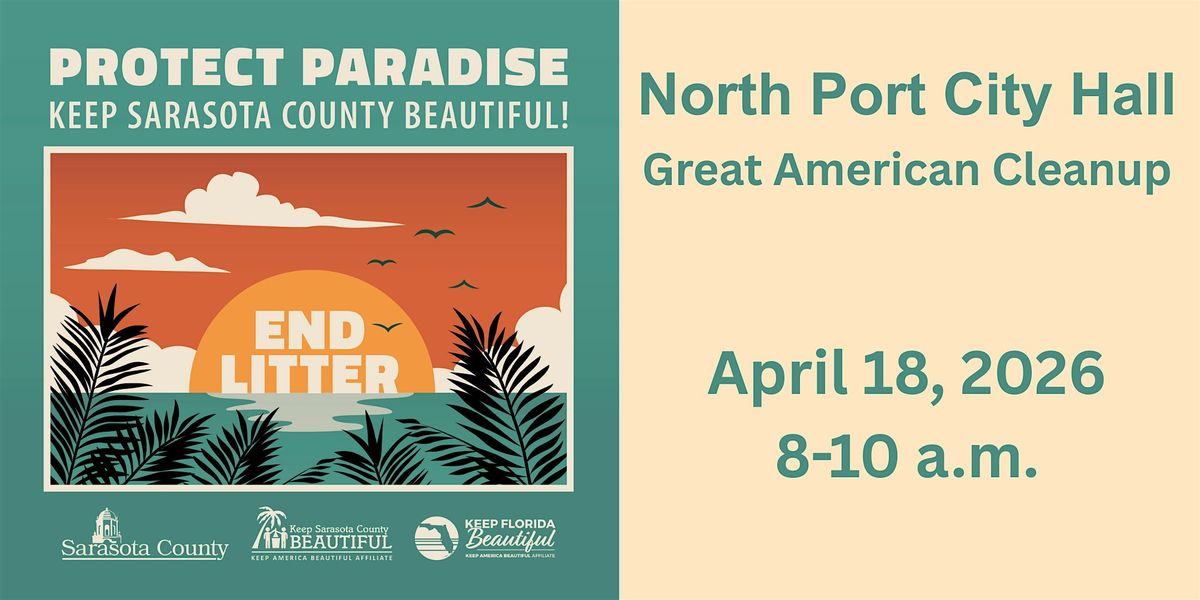 Join Keep Sarasota County Beautiful on Saturday, April 18, 2026, at North Port City Hall for a morning of community service and positive impact. Locally, as part of the Great American Cleanup, a nationwide initiative led by Keep America Beautiful (KAB), we’re uniting with volunteers across the country to remove litter, revitalize public spaces, and make our communities cleaner and more vibrant.