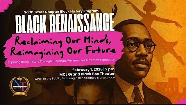 Join us for a walk in time of the Black Renaissance eras and its impact on black culture. You can expect dynamic amateur performances as well as performances from Dallas Black Dance Theater and Heart of Gold. Special Guests Include: Author Reshonda Tate, Art Trailblazer Daisha Board of Daisha Board Gallery, community partner Crishawn Finster, and artwork by artist Joshua Gordon.