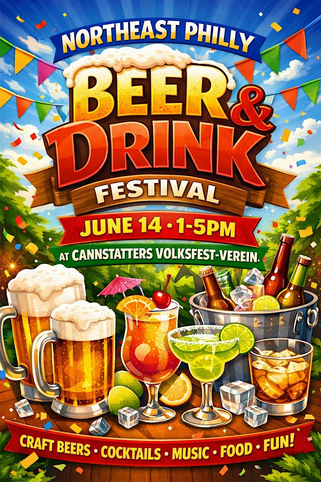 Welcome to our annual Northeast Philly beer and drink festival! Featuring live bands, crafters, and artist and food trucks! Sample over 25 different drinks on this awesome Sunday fun day!