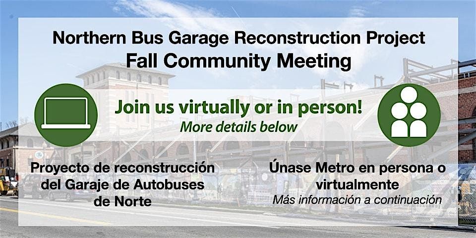 Registration is now open for the Northern Bus Garage Reconstruction Project community engagement meeting on Wednesday, May 20, 6:00 - 7:30 p.m. Join Metro virtually or in-person for our spring community meeting to discuss recent project updates and engage with Metro's project leaders.