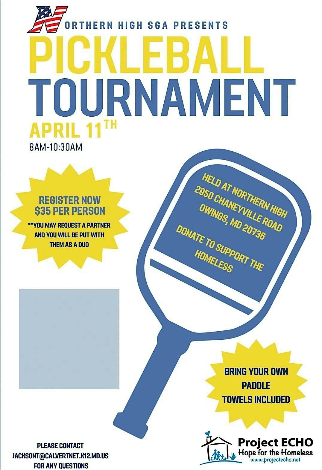 Get ready to rally at the Northern High SGA Pickleball Tournament! This fun, in-person event is perfect for all skill levels who want to enjoy some fast-paced, friendly competition. Whether you're a seasoned pro or just picking up a paddle, come join the excitement and meet fellow pickleball fans. Don’t miss out on the chance to showcase your skills and have a blast! Proceeds benefit Project Echo House, Hope For The Homeless.