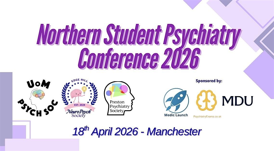 Welcome to the Northern Student Psychiatry Conference 2026, organised by the University of Manchester PsychSoc, in collaboration with Preston Psychiatry Society and Edge Hill University NeuroPsych society!