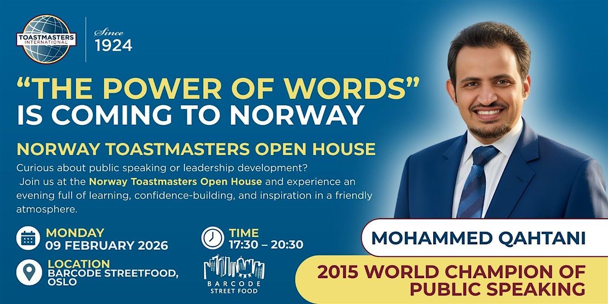 The Norway Toastmasters Open House is an interactive evening dedicated to communication, leadership, and personal growth. This event is open to guests, professionals, students, and anyone curious about developing confidence, clarity, and influence through effective speaking.